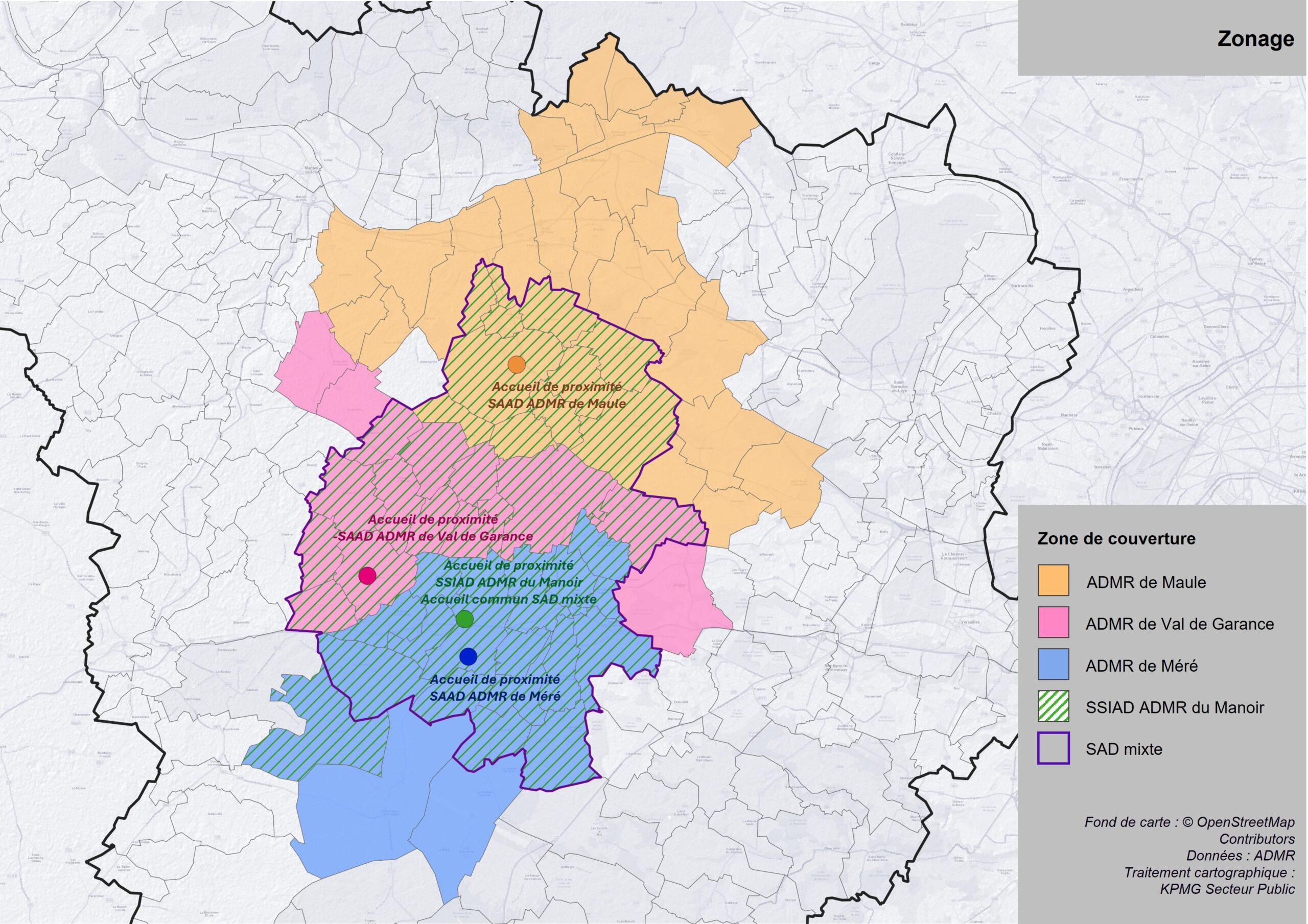 Le SAD Centre Yvelines intervient sur un secteur géographique défini regroupant plusieurs communes du département.